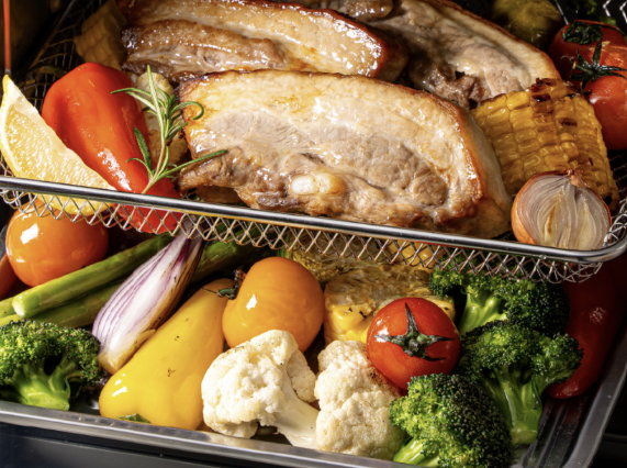 스팀이 수분을 잡아주고 에어프라이가 겉을 바삭하게 만들어