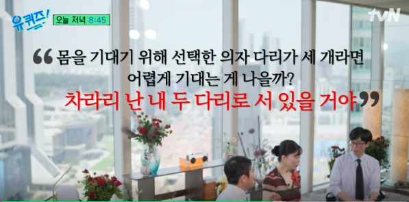 지난 26일 방송된 tvN '유 퀴즈 온 더 블럭'에서 최화정은 어머니에게서 받은 당당함과 명랑함을 이야기했습니다. MC 유재석은 최화정의 가장 큰 매력으로 '당당함'을 꼽았는데, 최화정은 이러한 당당함이 어머니로부터 물려받은 것임을 밝혔습니다.